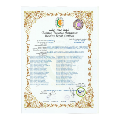 Bölge insanlarına yeni geçim kaynakları sunmak ve istihdamı geliştirmek amaçıyla kurulan firma, yurtiçi piyasada gıda endüstrisinin önde gelen kuruluşlarına hizmet vermektedir. Firmamız, 15.000 kg/gün hammadde işleme kapasitesine sahiptir. Kurutma işlemi özel kurutucularda dehidrasyon yöntemi uygulanarak yapılmaktadır.